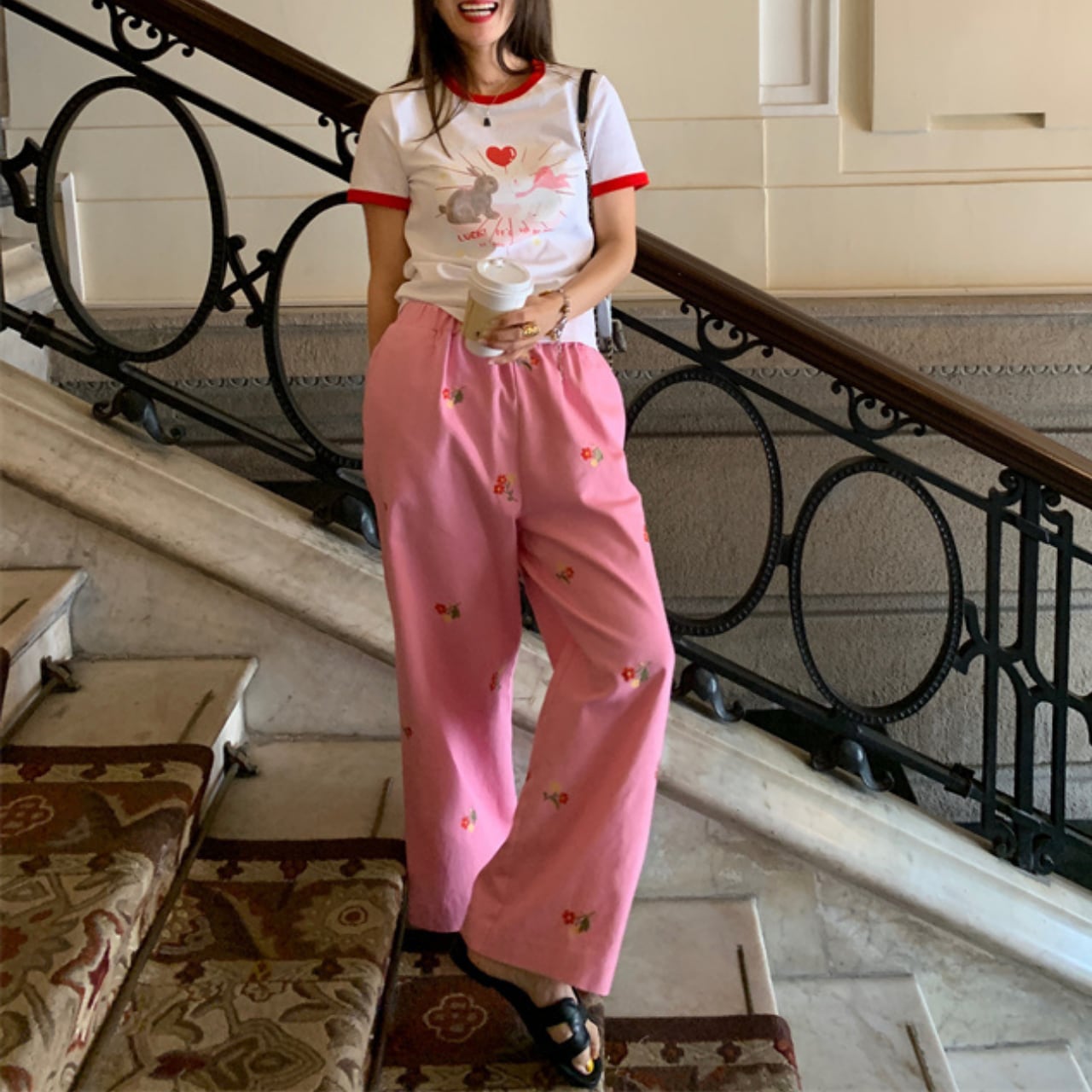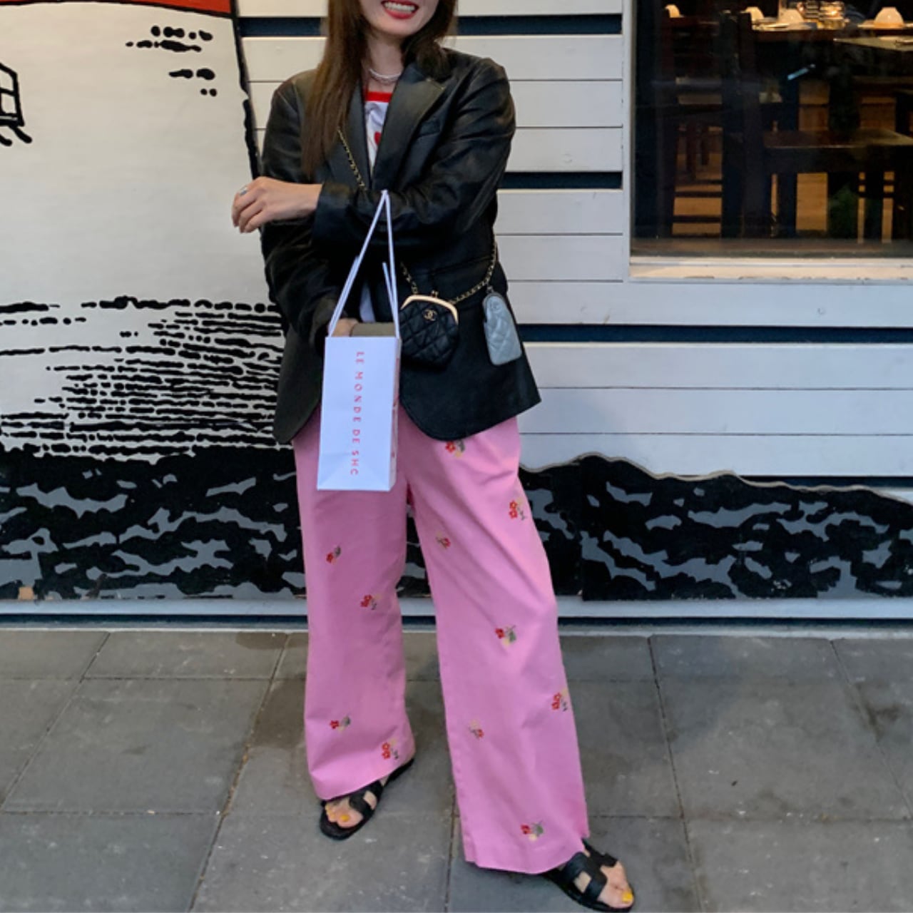 可愛らしい花柄刺繍が、シンプルなデザインにアクセントをプラス。