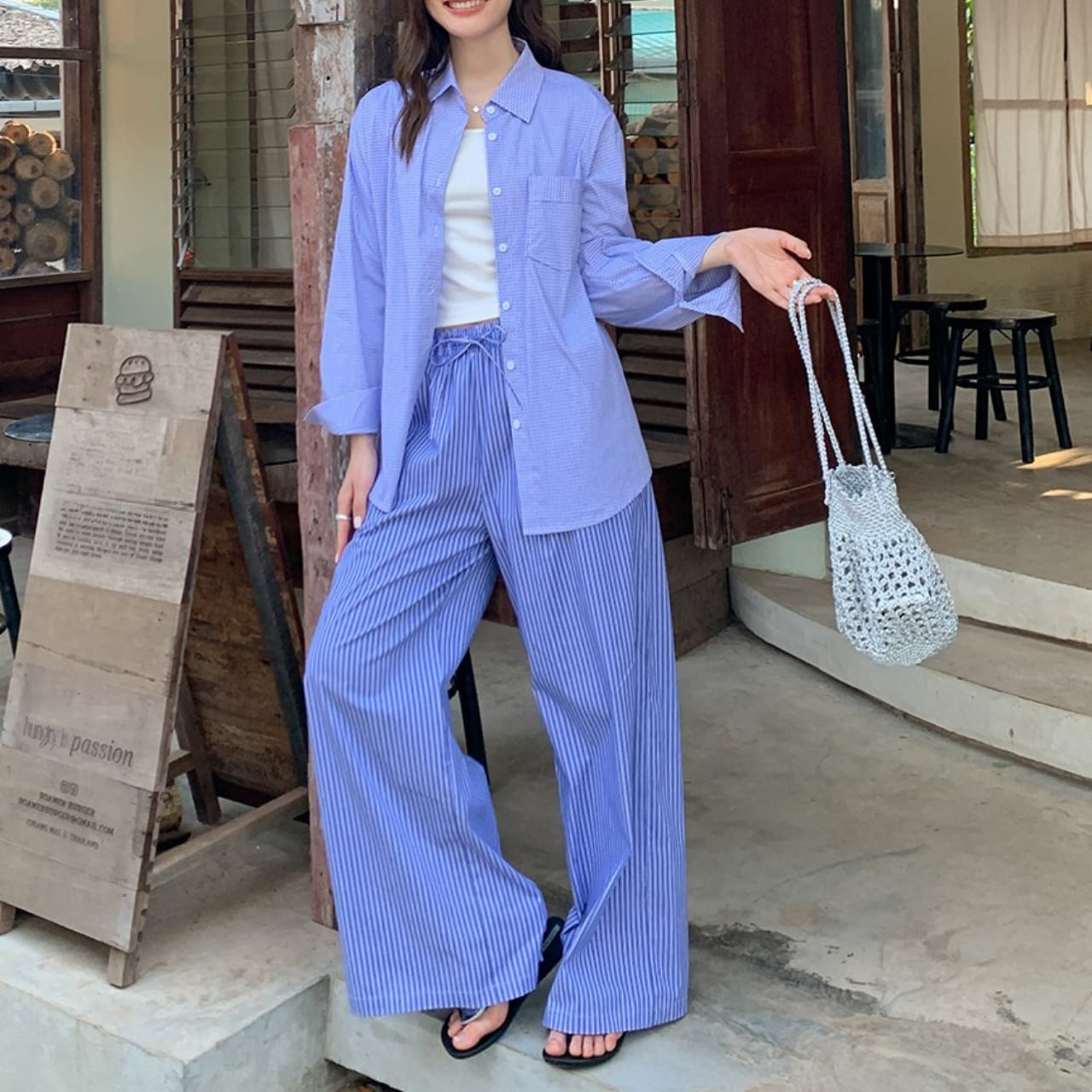 ストライプ柄がスタイリッシュなアクセントに。