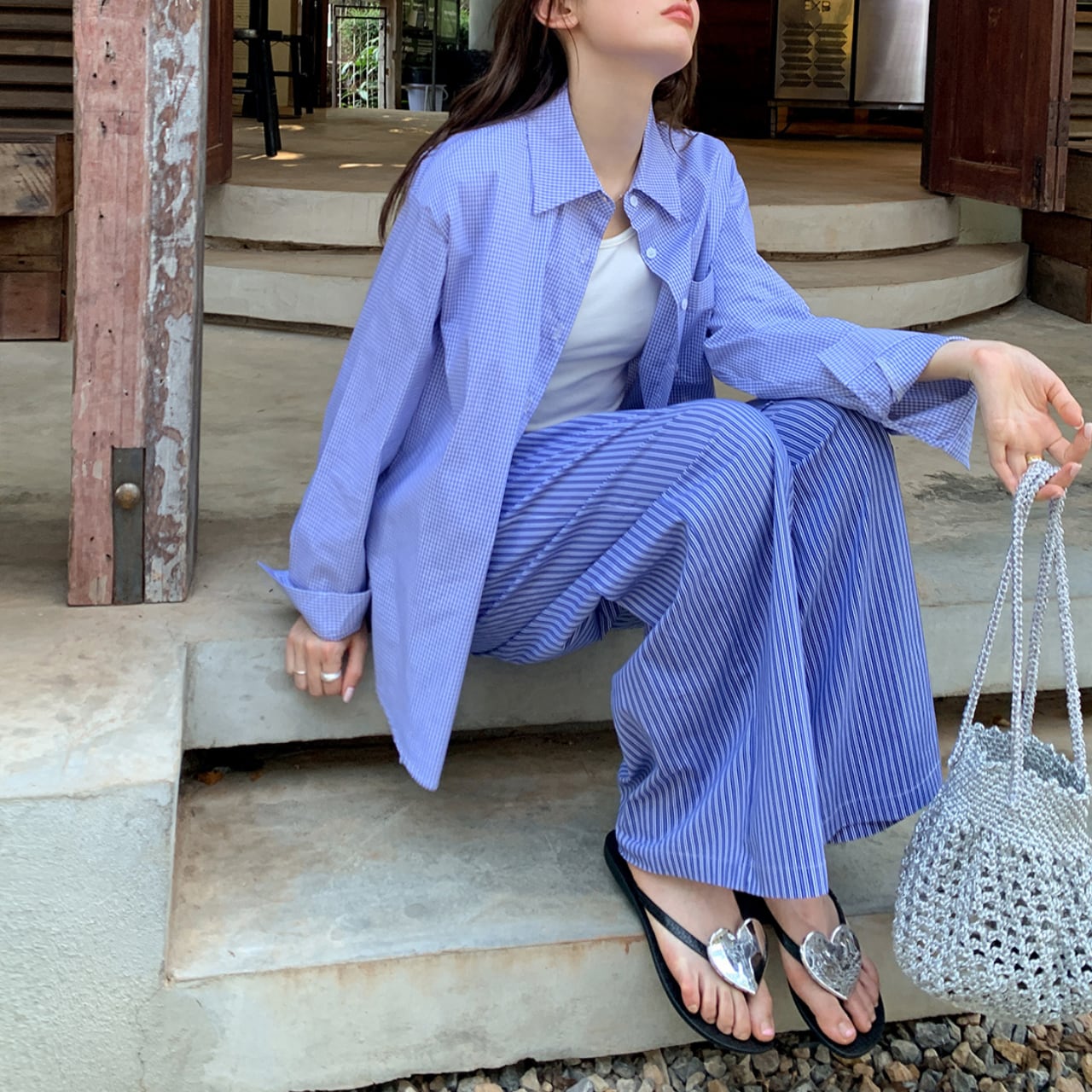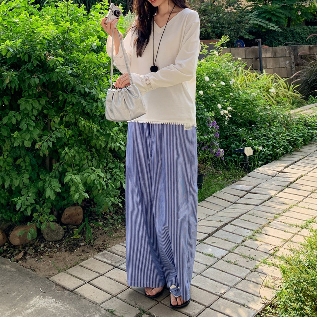 ゆったりとしたシルエットのワイドパンツは、