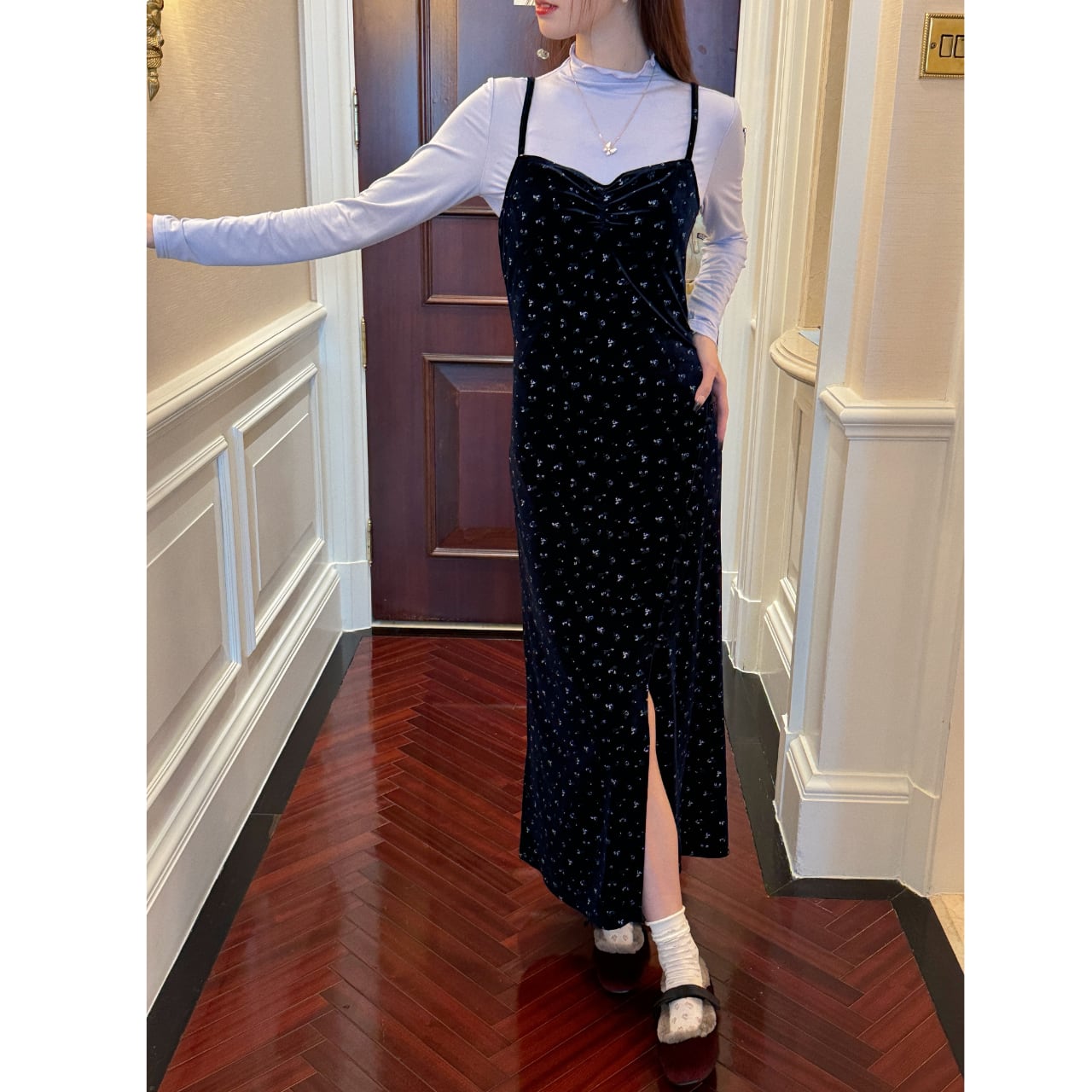 Velvet maxi camisole dress 00148