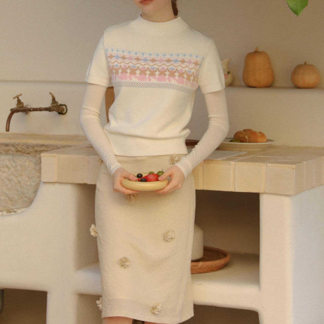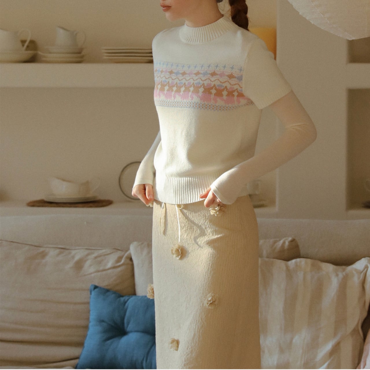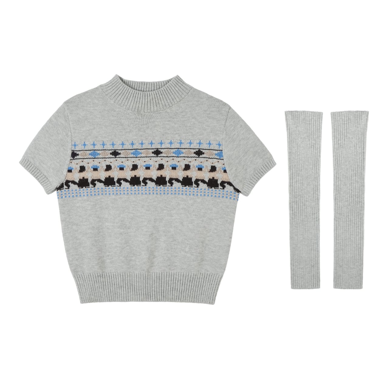 半袖ニットとアームウォーマーのセットで、気温や気分に合わせた着こなしが可能。